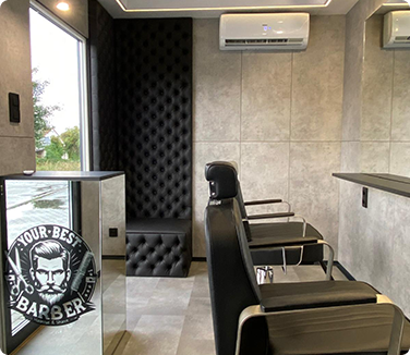 Wnętrze Hair Box w wersji barberskiej dostępne jest w dwóch starannie dopracowanych odsłonach. Wersja czarna to przestrzeń z charakterem – ciemne materiały, grafitowe ściany i industrialny design. Wersja brązowa to klasyczna elegancja – skórzane wykończenia i stonowane kolory tworzą prawdziwie męski klimat. Obie wersje są w pełni wyposażone i gotowe do pracy od pierwszego dnia.