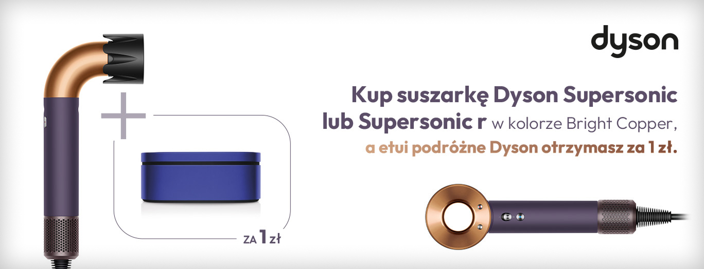 Kupując profesjonalną suszarkę Dyson Supersonic Professional HD11 Bright Copper, zyskujesz praktyczne etui podróżne Dyson w cenie 1 zł. Idealne rozwiązanie do bezpiecznego przechowywania i transportu sprzętu – w salonie i w podróży.