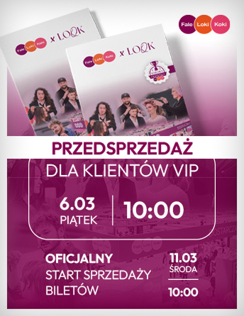 Już 6.03 o 10:00 rusza przedsprzedaż biletów dla Klientów VIP. Jeśli nie należysz do grupy Klient VIP FLK bilety będą widoczne dla Ciebie dopiero 11.03 od 10:00. Wtedy też zyskasz możliwość zakupu i skorzystania z promocji.
