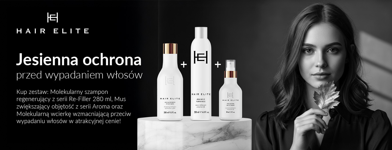 Hair Elite to marka, która łączy nowoczesne technologie z kompleksową pielęgnacją i stylizacją wymagających włosów. To połączenie profesjonalizmu salonu z komfortem domowej rutyny. Luksusowe formuły odbudowują strukturę włosa, urzekające zapachy odprężają, a elegancki design opakowań sprawia, że codzienna pielęgnacja staje się przyjemnością. Nasze receptury wyznaczają nowe standardy w pielęgnacji i stylizacji.