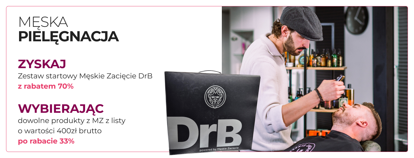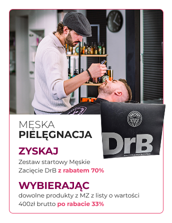 Przy zakupie dowolnych produktów z Męskiego zacięcia z załącznika 1. o wartości 400zł brutto- po rabacieproduktów stanowiących Towar Promowany (którego zakup podlega rabatowaniu w wysokości 33% na każdy z produktów), Klient otrzymuje zestaw produktów, idealny na rozpoczęcie pracy z DrB z 70% rabatem