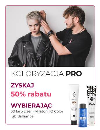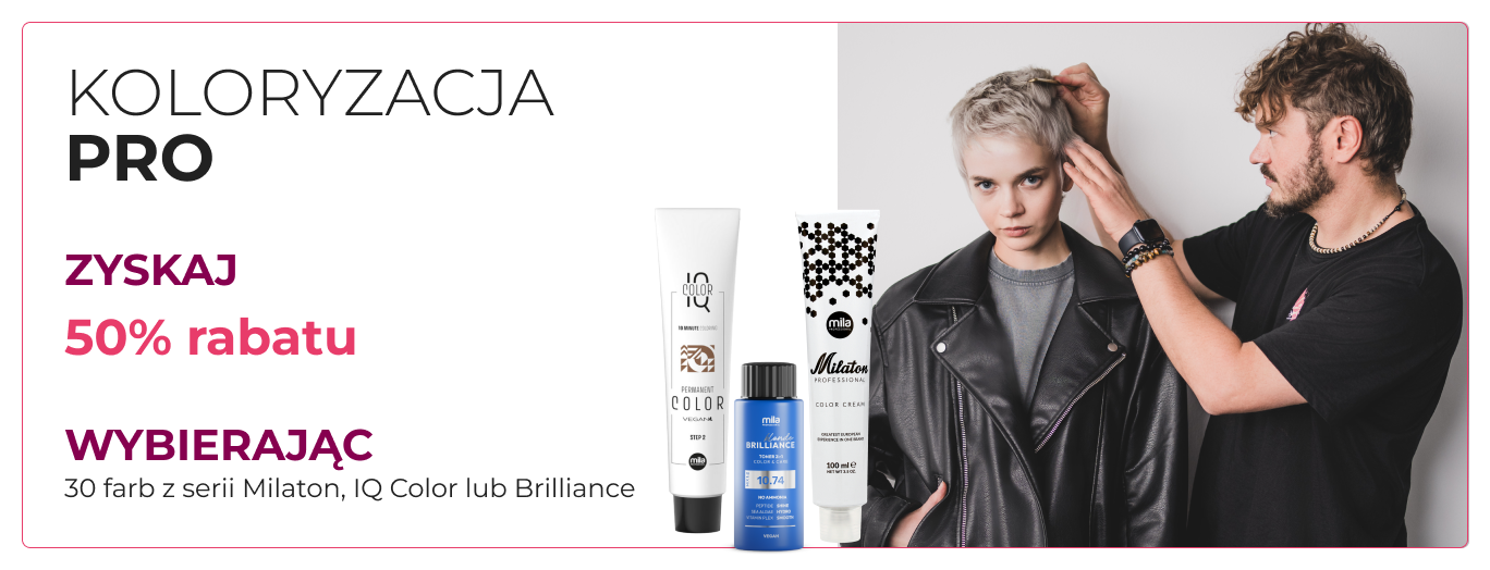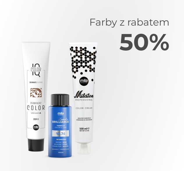 Kupując 30 dowolnych farb z serii IQ Color lub Milaton lub tonerów z serii Blonde Brilliance marki Mila Professional otrzymujesz rabat w wysokości 50%.