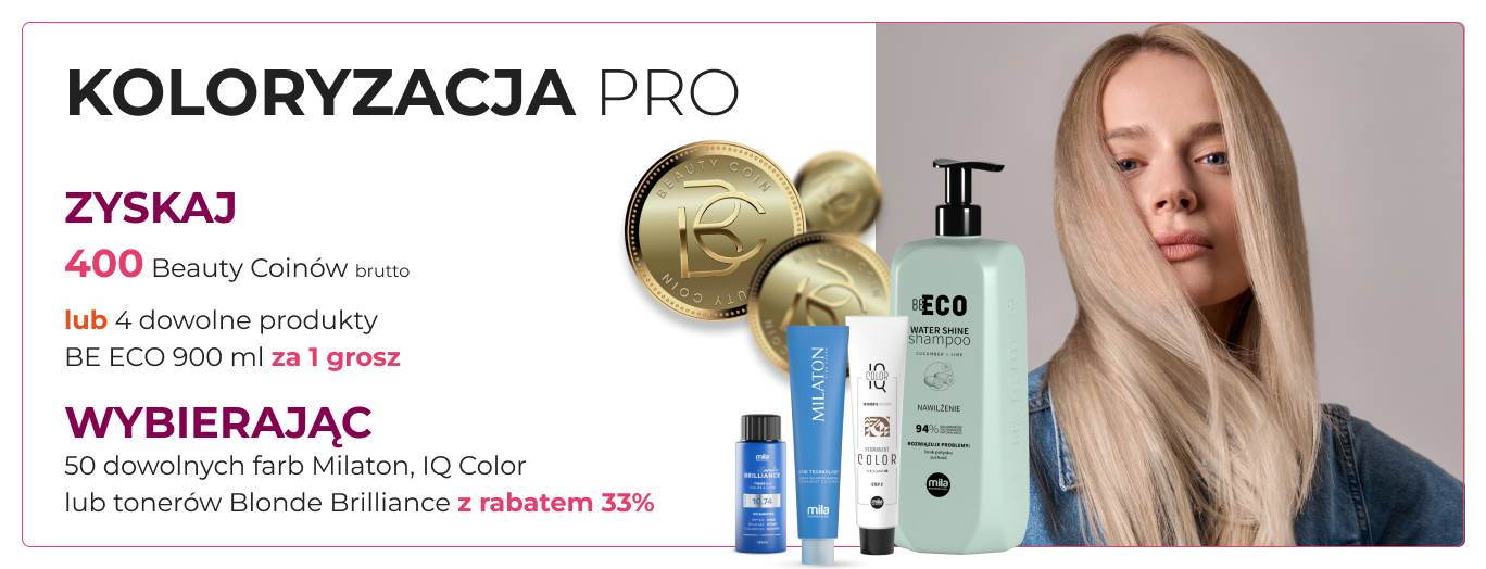 Dodaj do koszyka 50 dowolnych farb Milaton, IQ Color lub tonerów Blonde Brilliance z rabatem 33%.
