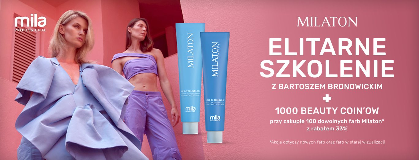 Zasady Akcji Promocyjnej: Kupujac 100 dowolnych farb MILATON i MILATON NEW z rabatem 33% otrzymaj elitarne szkolenie z Bartoszem Bronowickim + 1000 beauty coin’ów