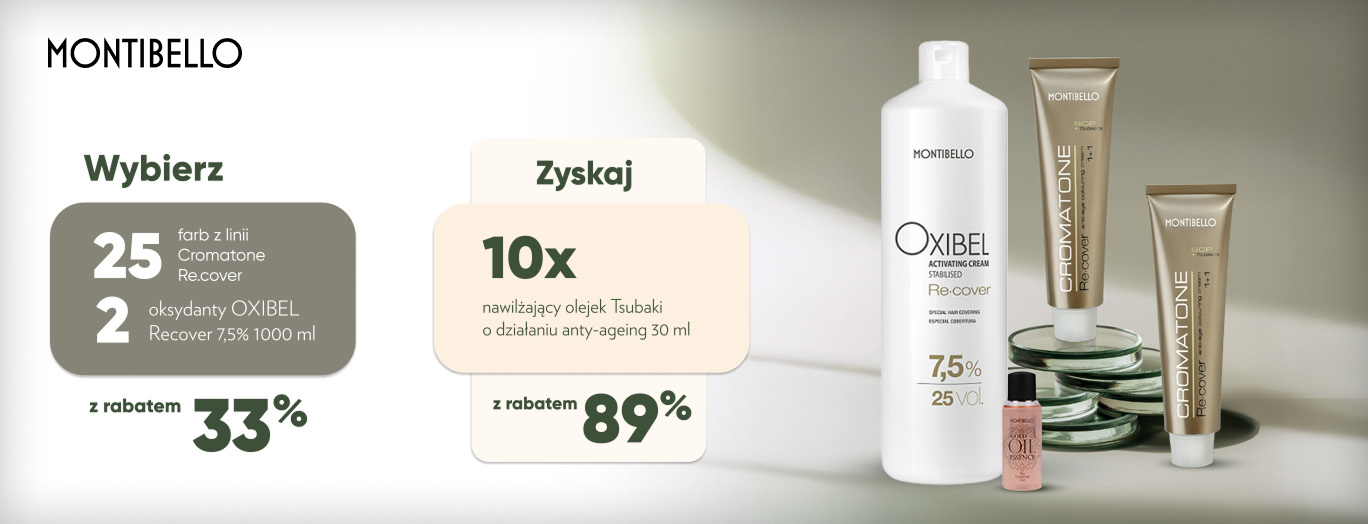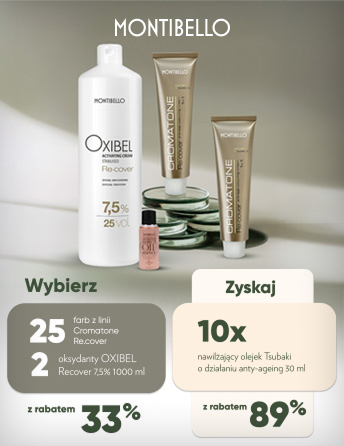 Recover powraca w specjalnej odsłonie COMEBACK. Po skompletowaniu zestawu złożonego z 25 farb Cromatone Recover oraz 2 oksydantów OXIBEL Recover 7,5% możesz dodać do zamówienia prezent z rabatem 89% – 10 nawilżających olejków Tsubaki 30 ml. To idealna okazja, aby wzbogacić wyposażenie salonu o pielęgnacyjny dodatek, który zapewnia włosom gładkość, nawilżenie i ochronę końcówek.