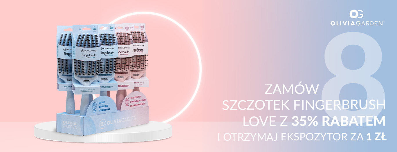Akcją Promocyjną objęte są szczotki Olivia Garden z serii Fingerbrush LOVE, dostępne w ofercie sprzedaży Organizatora na Platformie Fale Loki Koki.
