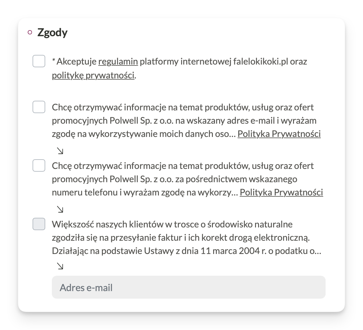 Teraz wystarczy zaakceptować regulamin platformy, wyrazić zgodę na kontakt e-mail oraz SMS i chęć na