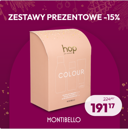 • Skład: Hop Colour Shampoo 300 ml, Hop Colour Rinse 200 ml, Hop Ultra Repair Sealed Ends 75 ml