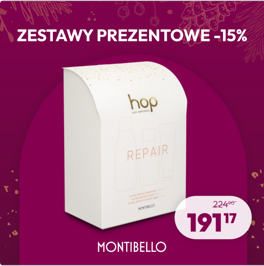 • Skład: Hop Ultra Repair Shampoo 300 ml, Hop Ultra Repair Rinse 200 ml, Hop Ultra Repair Sealed Ends 75 ml